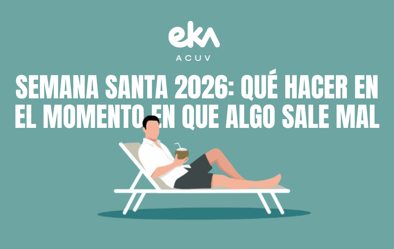 En estas fechas, desde EKA/ACUV recibimos cada año un buen número de consultas y reclamaciones relacionadas con las vacaciones de Semana Santa. Y hay un patrón que se repite constantemente: las personas que consiguen recuperar su dinero o hacer valer sus derechos son, casi siempre, las que actuaron en el momento. Las que esperaron a volver a casa, en cambio, se encontraron con dificultades para recopilar las pruebas, con que los plazos habían vencido o simplemente con que ya no había nada que hacer.